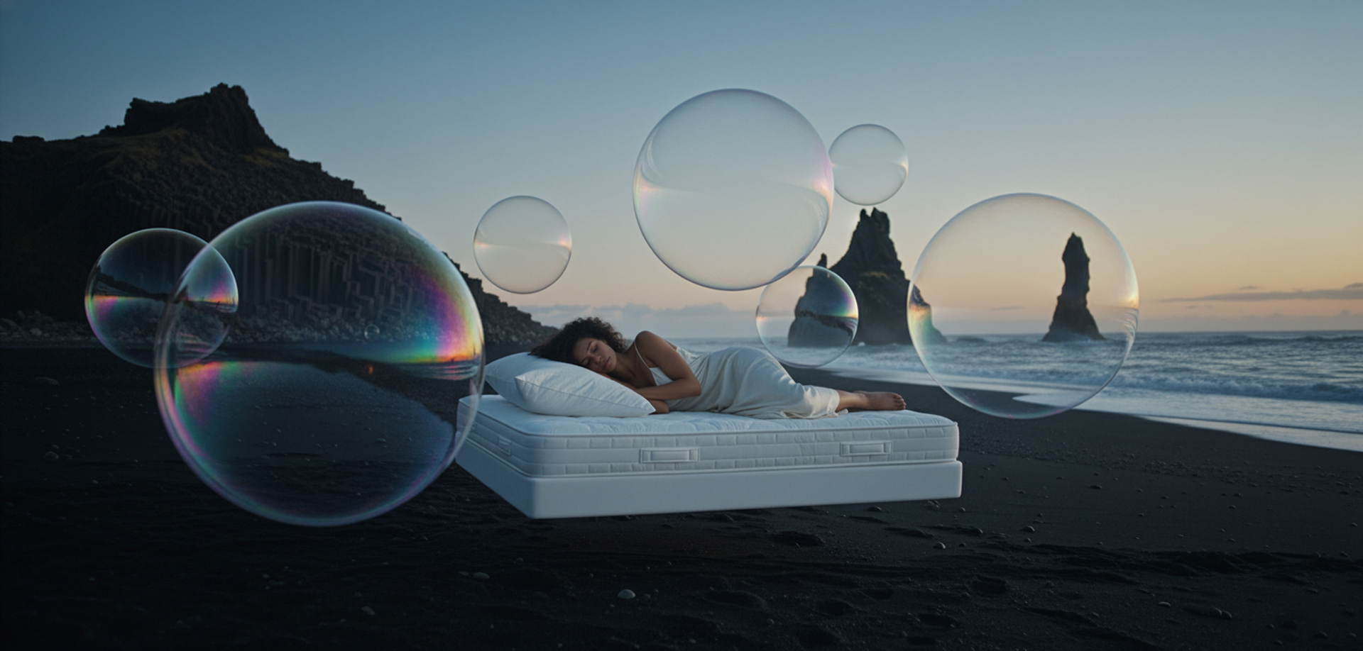 LEVITAS reimagines sleeping as transcendent poetry. The film treats sleep as metaphysical journey. Prehistoric nature, celestial phenomena, and ethereal atmospheres become visual metaphors for the stages of rest: letting go, floating, surrendering to the unknown.