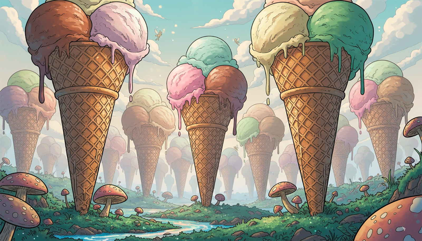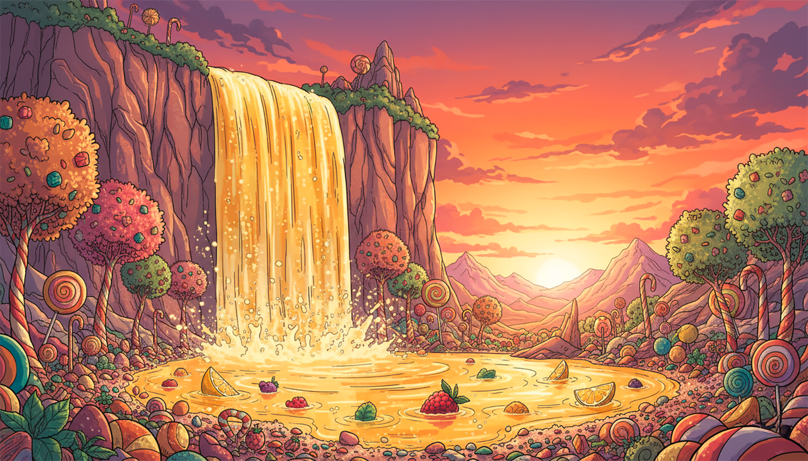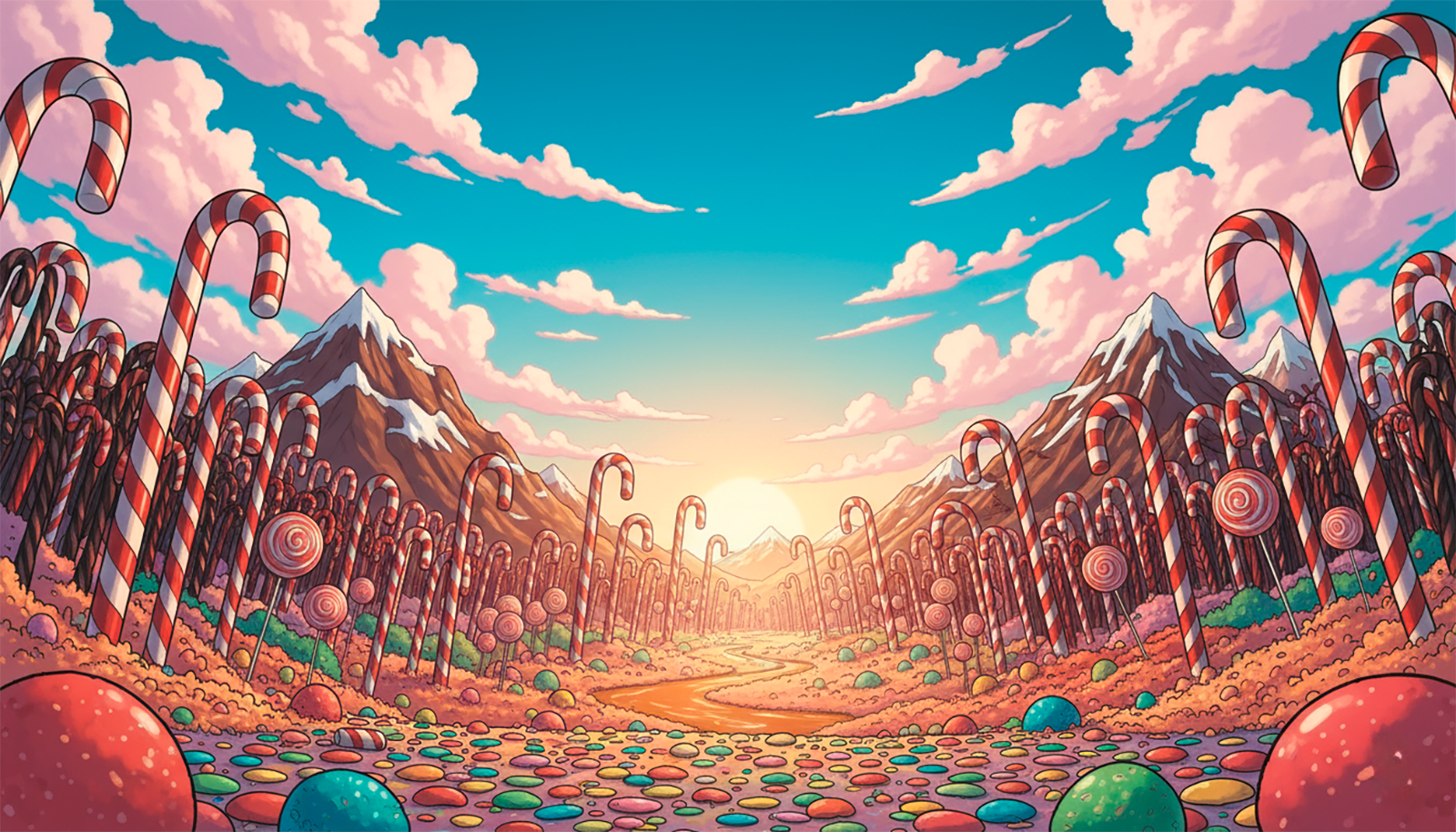 Every landscape in this candy realm bursts with color, whimsy, and cinematic magic—where chocolate rivers, marshmallow clouds, and living sweets create a playground of endless possibility.