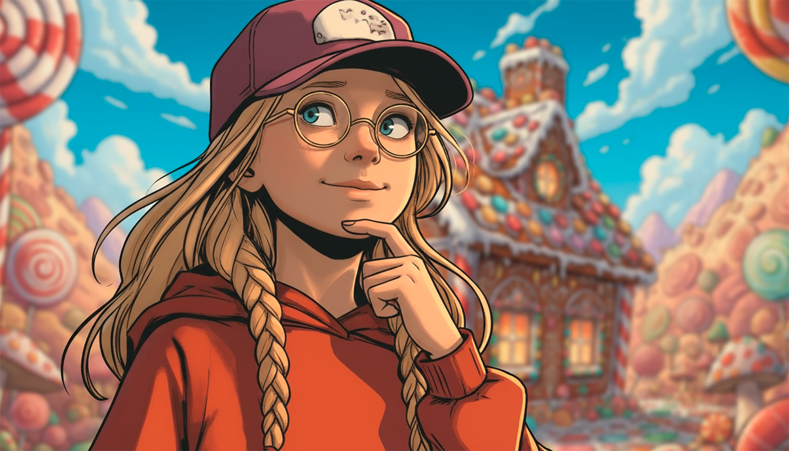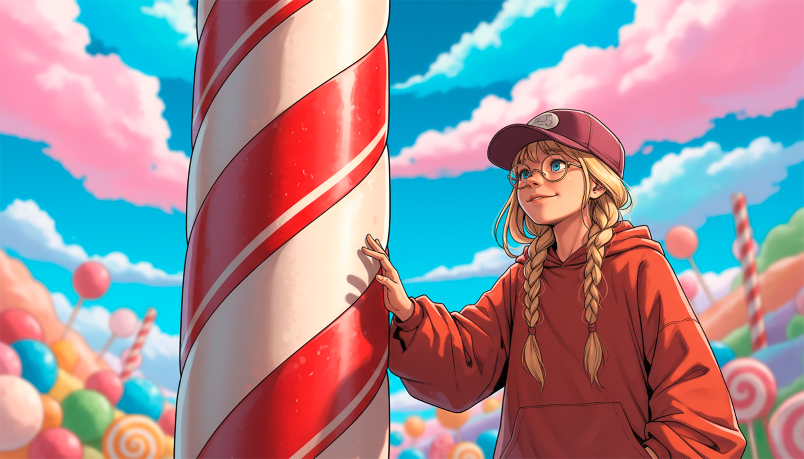 The heroine brings wide-eyed wonder and unstoppable energy to every corner of candy land—her laughter, courage, and imagination lighting the way through challenges and delight.