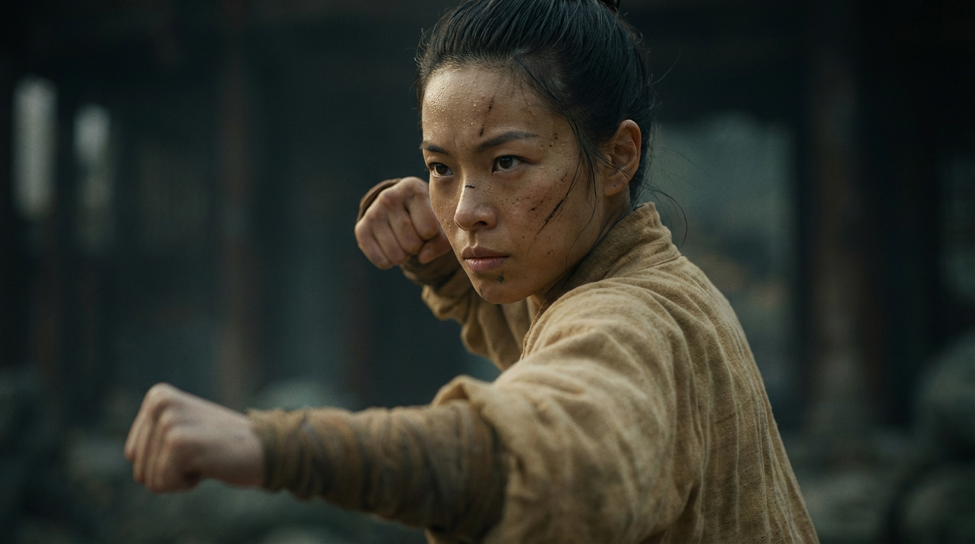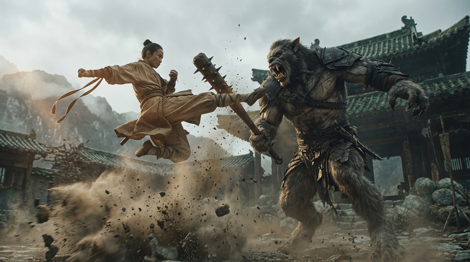 A visual study in contrasts between spiritual mastery and chaotic hunger. The design bridges the gap between elegant Eastern martial arts tradition and the gritty, visceral texture of dark fantasy monsters.