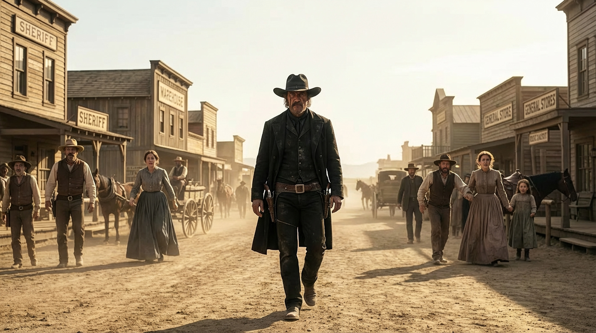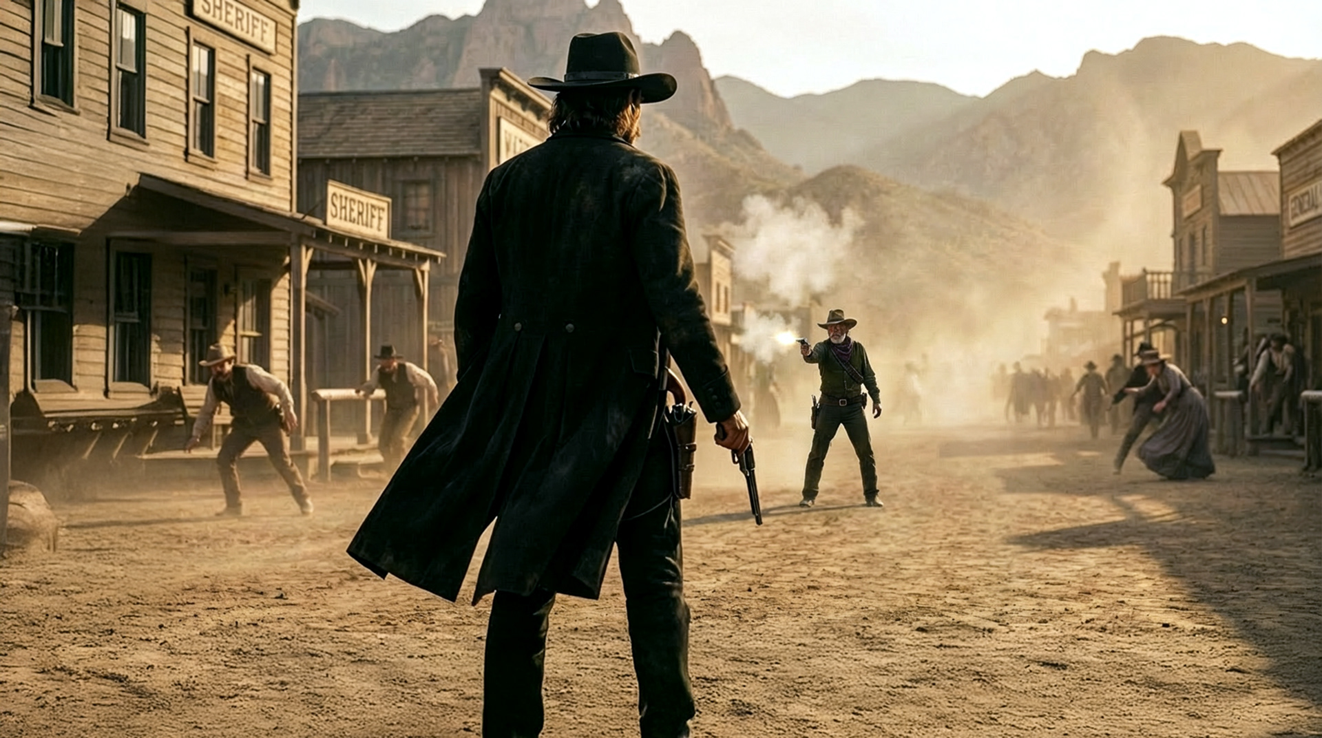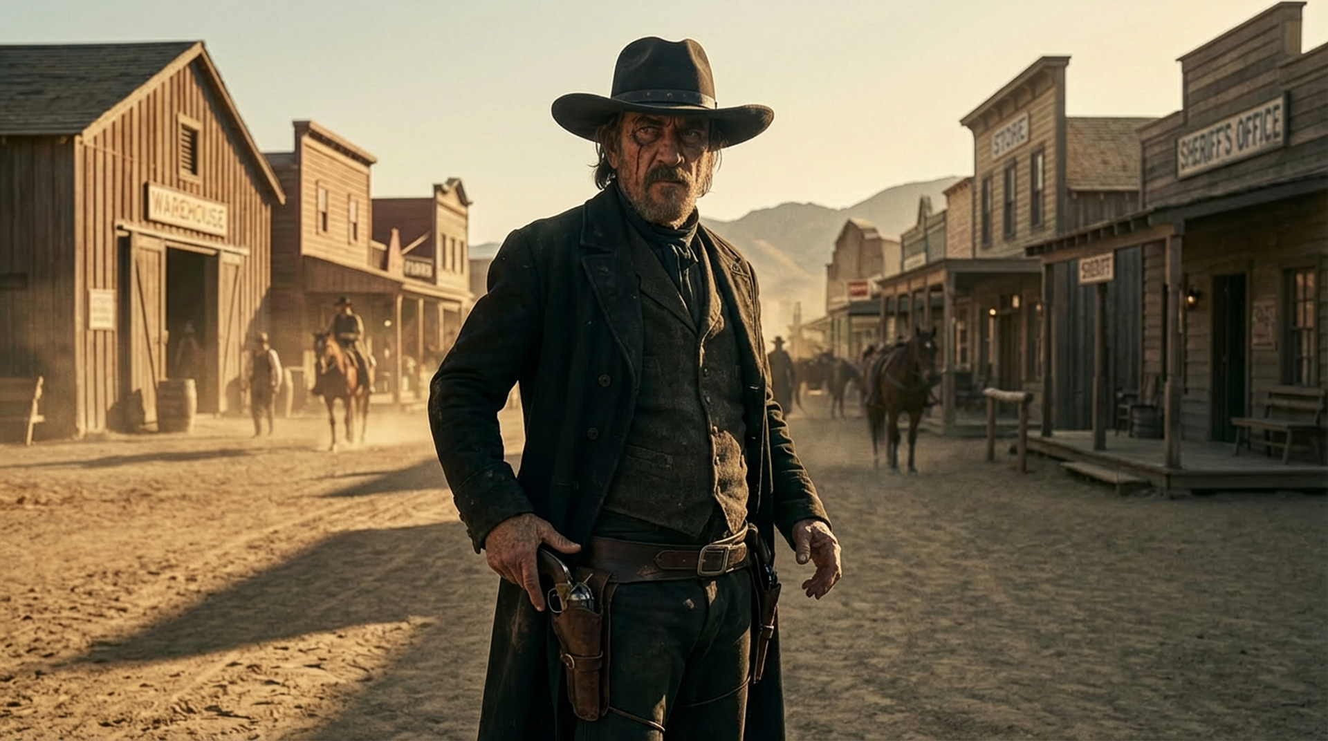The protagonists of HIGH NOON are specters of frontier justice—one a ghost returning to settle old debts, the other a relic refusing to fade. Battle-worn faces map decades of violence. Eyes that have witnessed too many last breaths now lock in final judgment. The desert town becomes their arena: No redemption. Only reckoning delivered in lead and fury.