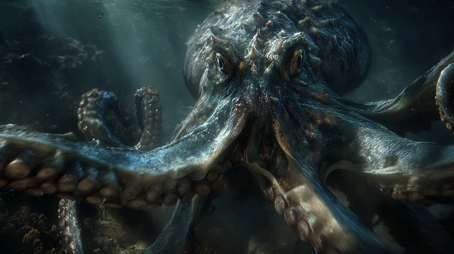 The creatures of SONGKRAN IN THE DEEP carry the weight of millennia beneath impossible pressure — yet they celebrate. Each tentacle, scale, and luminescent eye holds a civilization older than memory.